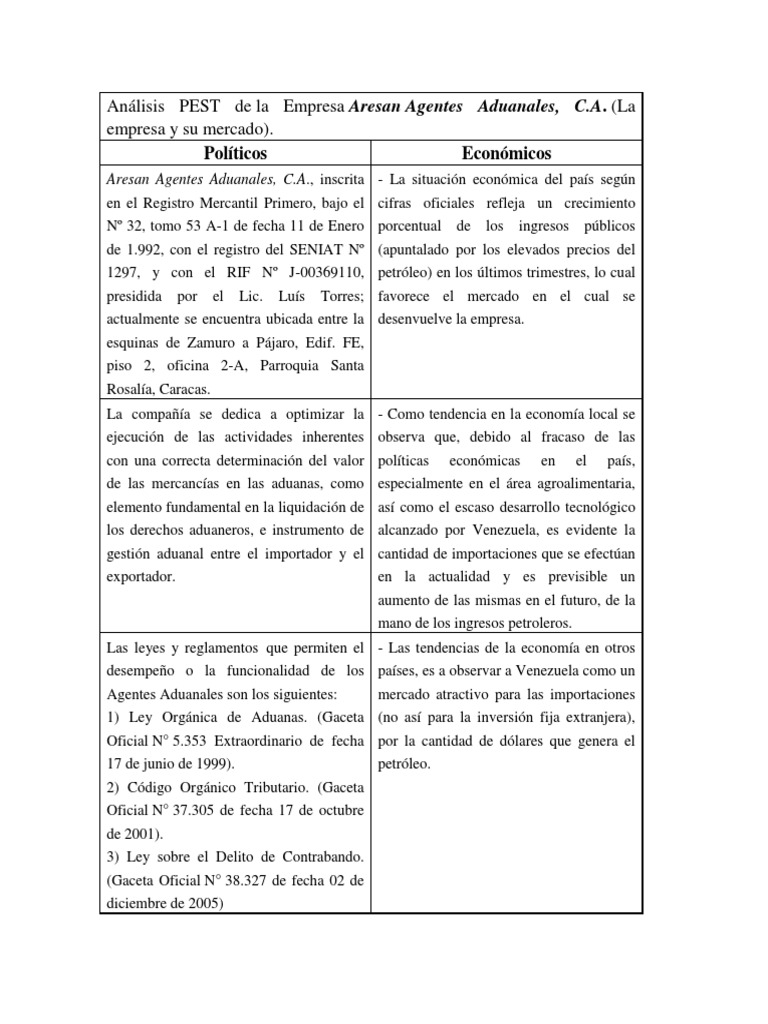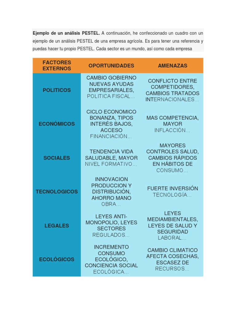 El administrador del blog nuevo ejemplo 10 january 2019 también recopila otras imágenes relacionadas con los ejemplo de pest en una empresa a continuación. Amenaza, ya que al ser una empresa del sector privado se ve afectada por las recesiones económicas y la población disminuye el consumo en estas brechas recensiónales. Un ejemplo de análisis pestel aplicado a esta empresa tendría en cuenta los siguientes factores Enviado por chuletator online y clasificado en economía. Uninotas 25 julio, 2017 administración de empresas y gestión de la innovación.
