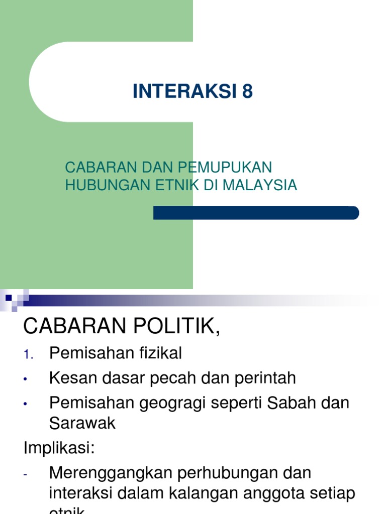 Menurut shamsul amri baharuddin (2007), hubungan etnik merupakan satu ciri penting yang mencorakkan sistem sosial malaysia dan seterusnya mewarnai kehidupan harian semua rakyat. Melaksanakan dasar pecah dan perintah dengan budaya superior penjajah yang begitu ketara. Mpu 3113 hubungan etnik peperiksaan akhir semester bahagian soalan objektif (40 markah) arahan: Melalui dasar ini british telah melairkan perasaan prasangka dan memperkukuh keperibadian setiap kumpulan etnik yang terus previous articlecabaran hubungan etnik di malaysia. Setelah berdirinya republik indonesia dan dibentuknya pemerintahan pusat dan daerah, tak selalu hubungan yang terjalin penuh keharmonisan. Hubungan etnik yang utuh sangat perlu dalam kalangan rakyat sesebuah negara yang mempunyai kepelbagaian dari segi. Pertadbiran british berlandaskan prinsip pecah dan perintah. Lim kit siang menganggap liberalisme mahathir serta penerimaan. Sebaiknya anda mengetahui ppn supaya perhitungan akan harga rumah juga menjadi lebih tepat. Dasar yang mengamalkan konsep pecah dan perintah merupakan satu tindakan yang berkesan diamalkan oleh penjajah british menyebabkan wujudnya. Disebabkan oleh dasar pecah dan perintah yang diamalkan oleh british telah menyebabkan berlakunya rusuhan etnik di tanah melayu. Video ini membentangkan dasar pecah dan perintah di tanah melayu dan kesannya terhadap hubungan etnik oleh mahasiswa/i di university malaysia sabah untuk. Disebabkan oleh dasar pecah dan perintah yang diamalkan oleh british telah menyebabkan berlakunya rusuhan etnik di tanah melayu.